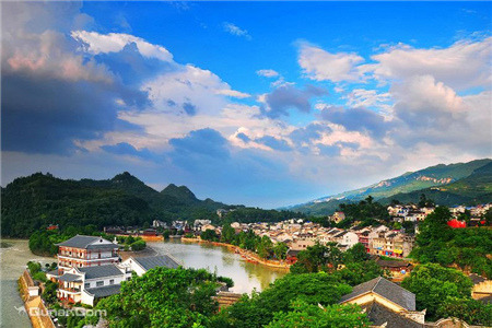 读过《边城》的人,都会对洪安这一“边城”的原型有所期待。走入洪安,沿着《边城》的线索,感受古镇的自然美,与古镇人民淳朴的感情。 洪安古镇位于重庆市秀山县境东南,距县城47公里,是重庆、贵州、湖南三省市交界之地,有“渝东南门户”之称,是一脚踏三省的插花地,也是沈从文笔下的《边城》原型。清代名人章恺曾诗曰“蜀道有近时,春风几处分;吹来黔地雨,卷入楚天云”,描绘了“一脚踏三省”的地利之优。 洪安古镇内古建筑群立,其工艺、造型独特,土家苗寨风情别具一格。自然景点“象鼻吸水”、“九龙坡”以及“三不管”小岛都享有盛名。洪安全镇依山傍水,绿树成荫,河水碧波荡漾,风景如画。洪安老街最有味道的是索拉渡河船,由一根钢丝连接两岸码头,也系住了渡船来往的动力依靠。满客之后,老梢公悠闲的坐在船屋内的木制四方条台上,用一根挖有细槽的两尺圆木作绞杆,卡在渡河钢丝上一点一点把船拖到对岸。