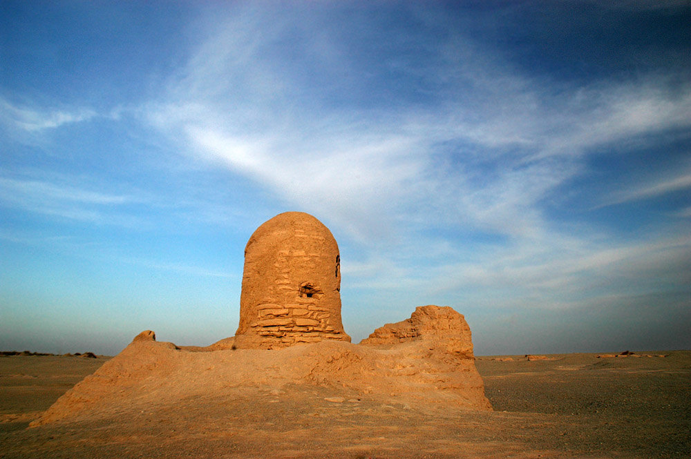 遗址位于若羌县城东80里处,由唐代吐蕃古戍堡和周围分布的魏晋时期的古建筑群遗址,以及汉代屯田水利工程设施和伊循城遗址所组成。据史书记载,西汉时,此地为西域楼兰国之伊循城。汉昭帝元凤四年公元前77年,鄯善王古楼兰国尉屠耆请求汉王朝派一将领兵到此屯田积谷,汉即派一司马和吏士40人屯田伊循。唐代时,此地为吐蕃所占,古堡即为吐蕃修建的一座军事堡垒。 19世纪,英国人斯坦因曾在此地进行发掘,盗走了塑、壁画等大批文物。50年代,新疆生产建设兵团农二师勘像探队在这里发现了汉代完整的渠道等水利工程系统和埋在沙漠下的大片良田。1973年,新疆考古工作者在米兰古河道边发掘了唐代吐蕃古戍堡遗址。 古戍堡是米兰古城遗址里一座较有代表性的建筑物,它位于新甘公路的要道上,南北宽约56米,东西长约70米,呈不规则正方形。城垣为夯土筑,夯土层中夹有红柳枝,夯土层上用土坯砌成,西墙有两段宽达5―6米的缺口,可能是古戍堡城门。北部为一阶梯形大土坡,自低凹处至戍堡北墙依坡盖屋,屋为平顶,不见门洞,其构造形式类似西藏布达拉宫。堡东部为一大型房屋,南部为一高近13米的土台,土台上立有杆,似为峰火台。古堡的东西两侧,排列着众多的佛塔和规模宏大的寺院遗址。据史书记载,我国古代的著名高僧法显等,在西去天竺或东归故里的途中曾在这里讲法拜佛。